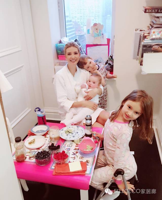 当问到Ivanka对家的最初设想时,她说:“我想要一个孩子们可以快乐地生活的家,我的丈夫可以把他的脚放在桌子上或躺在沙发上看电视,在家中就是彻底的放松和享受。”现在看看Ivanka的家,从色调到家具都透露着满满的对家人的爱意。