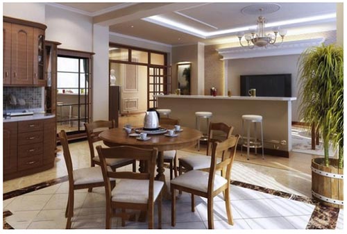 餐厅是人们专门用来吃饭的房间,因此其家具也是人们就餐时需要用到的桌椅、酒柜等家具。总的来说,餐厅的家具主要有以下三种家具。