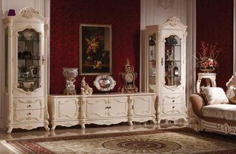 二、偏好鲜艳色系,尤其是“巴洛克式家具”色彩都很强烈,其中又以金色为其主色,多用镀金或以金箔来装饰,显得金碧辉煌;“洛可可式家具”的色彩较为柔和,米黄、白色的花纹图案是其主色;“新古典家具”色彩较偏向暖色系,如原木色等。